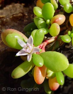 This tiny plant grows in clumps and clings to the rocks near the ocean.